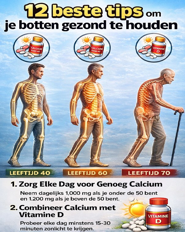 Naarmate we ouder worden, verliezen onze botten van nature dichtheid, waardoor we vatbaarder worden voor botbreuken, osteoporose en gewrichtspijn. Maar het goede nieuws is dat u proactieve stappen kunt ondernemen om uw botten sterk en veerkrachtig te houden, ongeacht uw leeftijd. Of u nu in de veertig bent en toekomstige problemen wilt voorkomen, of in de zeventig en uw mobiliteit wilt behouden, kleine veranderingen in uw levensstijl kunnen een grote impact hebben op uw botgezondheid. Van voeding en beweging tot slimme gewoonten die botverlies tegengaan, de juiste aanpak kan u helpen om jarenlang actief, zelfstandig en pijnvrij te blijven.