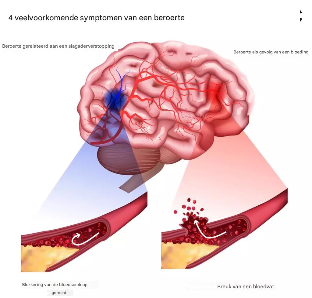Een beroerte wordt veroorzaakt door een embolie in een bloedvat in de hersenen (80% van de gevallen) of door een breuk, wat leidt tot bloedingen (20% van de gevallen). Daarom is het erg belangrijk om snel te reageren en 15 te bellen wanneer de eerste symptomen optreden. Dit zijn de belangrijkste alarmsignalen, volgens prof. Sonia Alamowitch, hoofd van de afdeling neurovasculaire spoedeisende hulp van het ziekenhuis La Salpêtrière (Parijs, AP-HP).