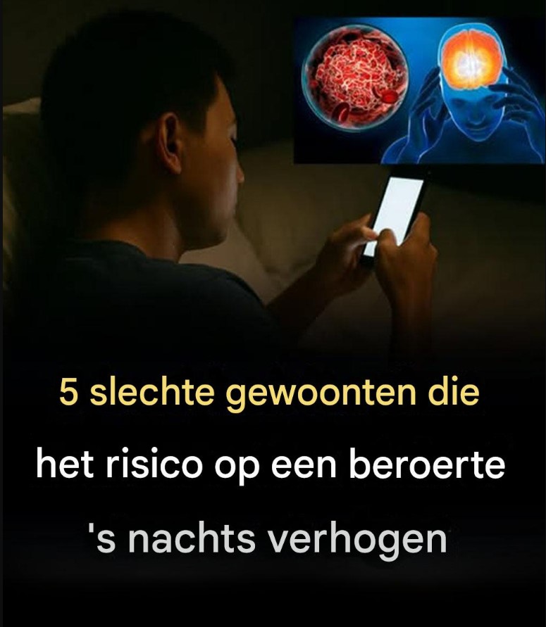 Een beroerte, een ernstige medische aandoening, treedt op wanneer de bloedtoevoer naar de hersenen wordt onderbroken. Hoewel sommige risicofactoren, zoals leeftijd en genetische aanleg, niet te beïnvloeden zijn, kunnen bepaalde gewoonten de kans op een beroerte vergroten, vooral ‘s nachts. Hier zijn vijf slechte gewoonten die uw risico kunnen verhogen:
