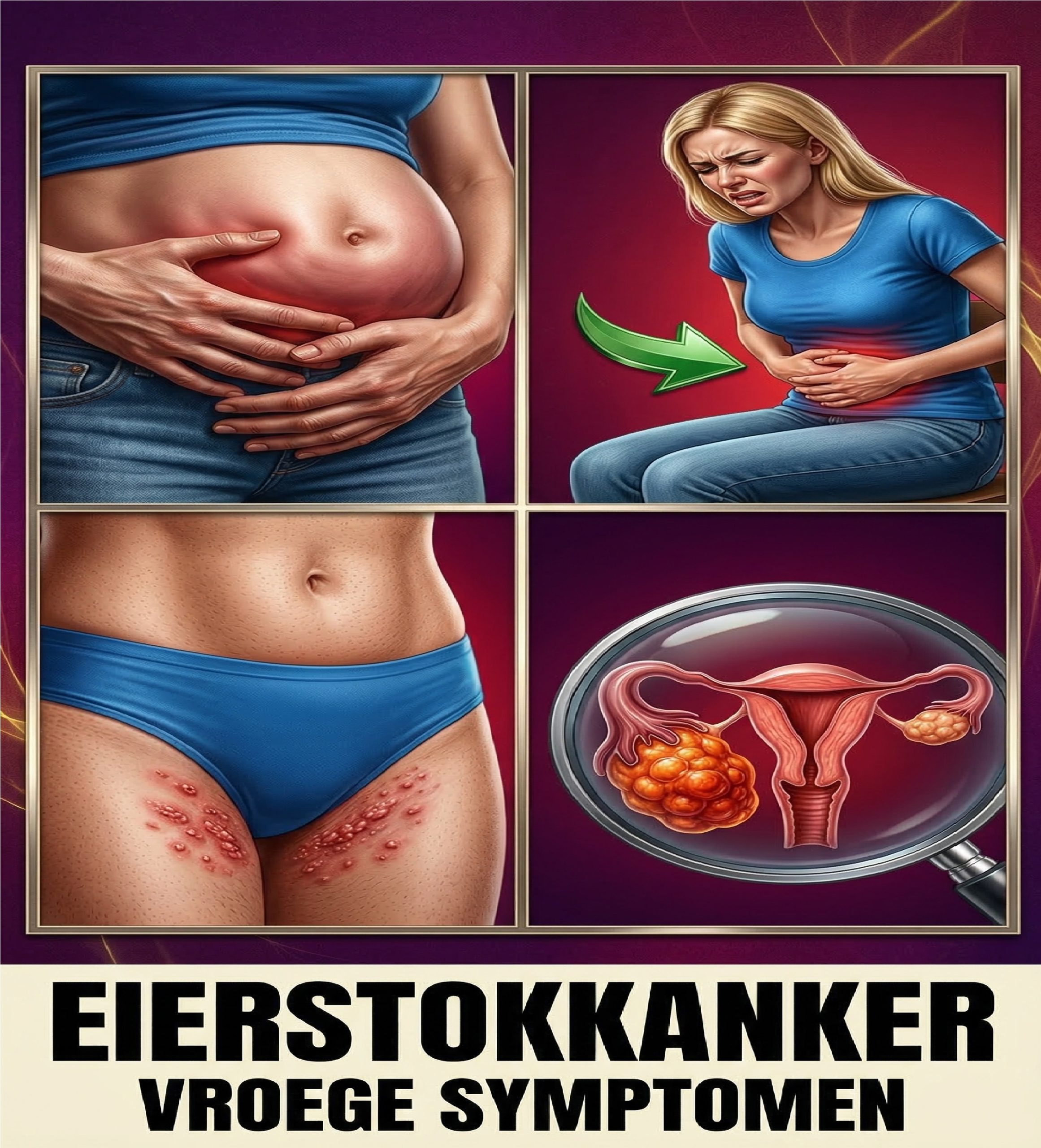 A aanhoudend opgeblazen gevoel in de buik staat bovenaan de lijst met waarschuwingssymptomen van eierstokkanker die vrouwen vaak afdoen als alledaagse problemen. Dit constante opgezette gevoel, een van de waarschuwingssymptomen van eierstokkanker, zorgt ervoor dat veel vrouwen zich onzeker en gefrustreerd voelen wanneer hun kleding niet meer comfortabel zit.