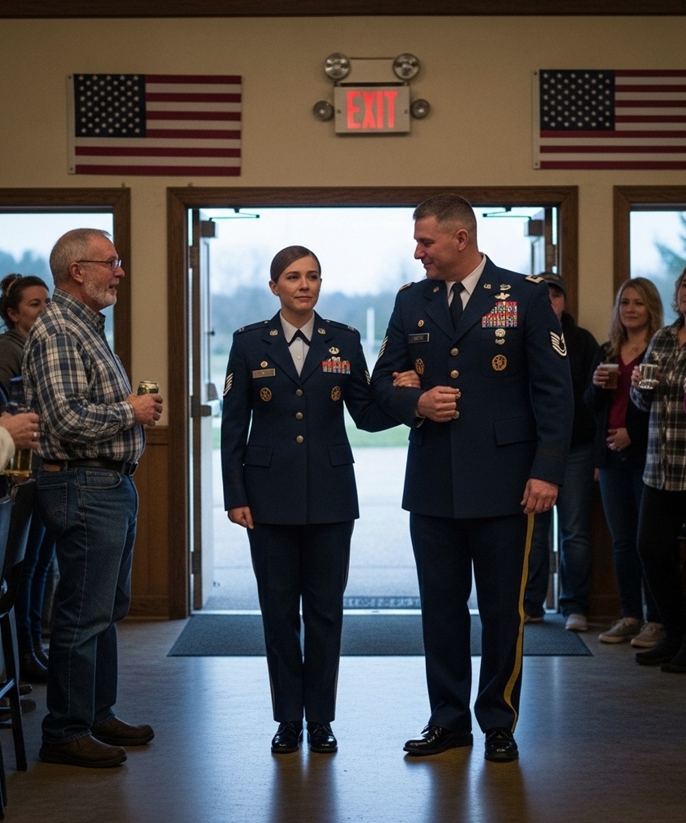 De schemering kleurde de parkeerplaats blauw. Binnen zag het eruit als in elke Legion: plaquettes, vilten prikborden, een POW/MIA-tafel met een enkele roos. Paula zat aan haar kaarttafel met het stempel dat ze al gebruikte voordat ik het kon lezen. « Ray, schat, » fluisterde ze, « je staat niet op de lijst. » Ik legde de envelop in de donatiebox en draaide me om naar de uitgang.