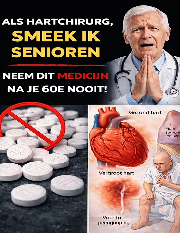 De online rondcirculerende afbeelding toont een bezorgde arts die ouderen boven de 60 smeekt om een bepaald veelvoorkomend medicijn te vermijden. De arts waarschuwt dat het medicijn het hart kan verzwakken, vochtophoping rond de longen kan veroorzaken, een vergroot hart kan teweegbrengen en gezwollen voeten kan veroorzaken. Deze symptomen wijzen op hartfalen of vochtretentie, aandoeningen die veel ouderen ervaren. Maar is er één specifieke pil die deze dramatische bewering veroorzaakt? Laten we eens bekijken wat betrouwbare bronnen zeggen over medicijnen die daadwerkelijk risico’s voor de hartgezondheid van 60-plussers met zich meebrengen.