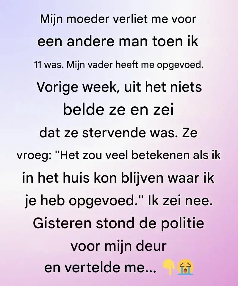Na 10 dagen in het ziekenhuis ging ik naar huis met de gedachte dat ik eindelijk rust zou krijgen. Maar er stond iets bij de deur op me te wachten wat ik nooit had verwacht. Mijn schoondochter, Valeria, keek me aandachtig aan en zei koel: « Mijn ouders zijn hier al naartoe verhuisd, je kunt ze … Lire plus