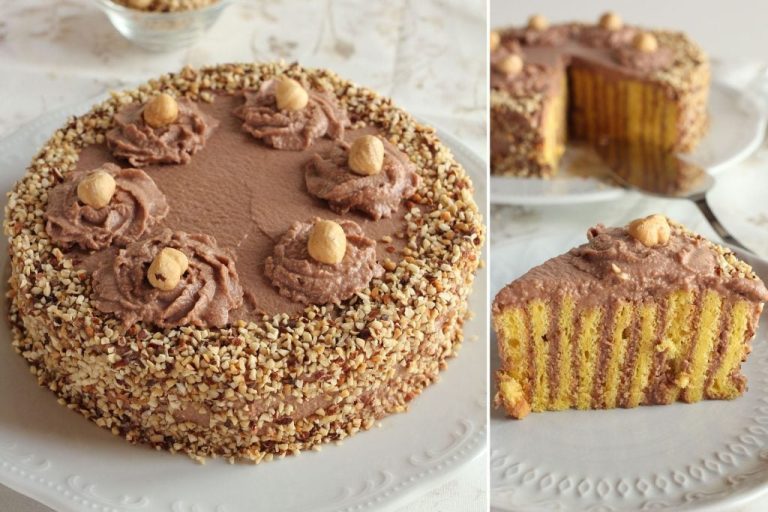 Deze heerlijke taart is perfect voor liefhebbers van hazelnoten. De combinatie van een luchtige biscuitbodem met een rijke roomvulling en een knapperige decoratie maakt het een onweerstaanbaar dessert.
