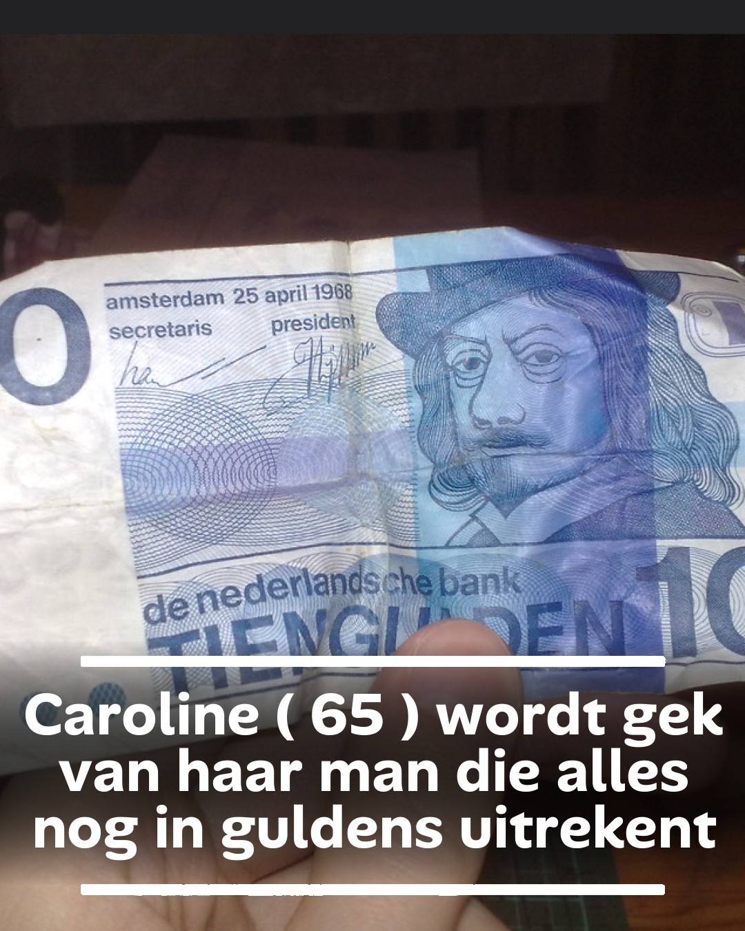 Volgens Caroline is haar man blijven hangen in een tijdperk dat al ruim twintig jaar achter ons ligt. “We hebben sinds 2002 de euro. Dat is langer geleden dan sommige huwelijken duren. En toch doet hij alsof die munt morgen weer wordt afgeschaft.”