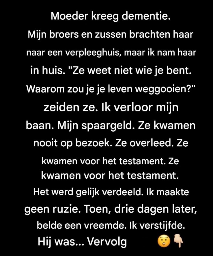 Mijn moeder verdween niet in één klap uit mijn leven.Ze vervaagde – stilletjes, bijna beleefd – als een licht dat beetje bij beetje gedimd wordt. Eerst waren er de kleine misstapjes: sleutels die in de vriezer bleven liggen, afspraken die werden vergeten, verhalen die twee keer met dezelfde vriendelijke glimlach werden verteld. We lachten er … Lire plus