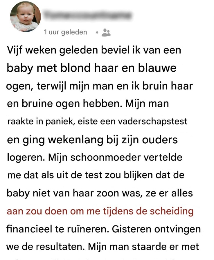 Mijn man verliet ons vanwege de blauwe ogen van onze baby – wat de DNA-test aan het licht bracht, liet hem sprakeloos achter.