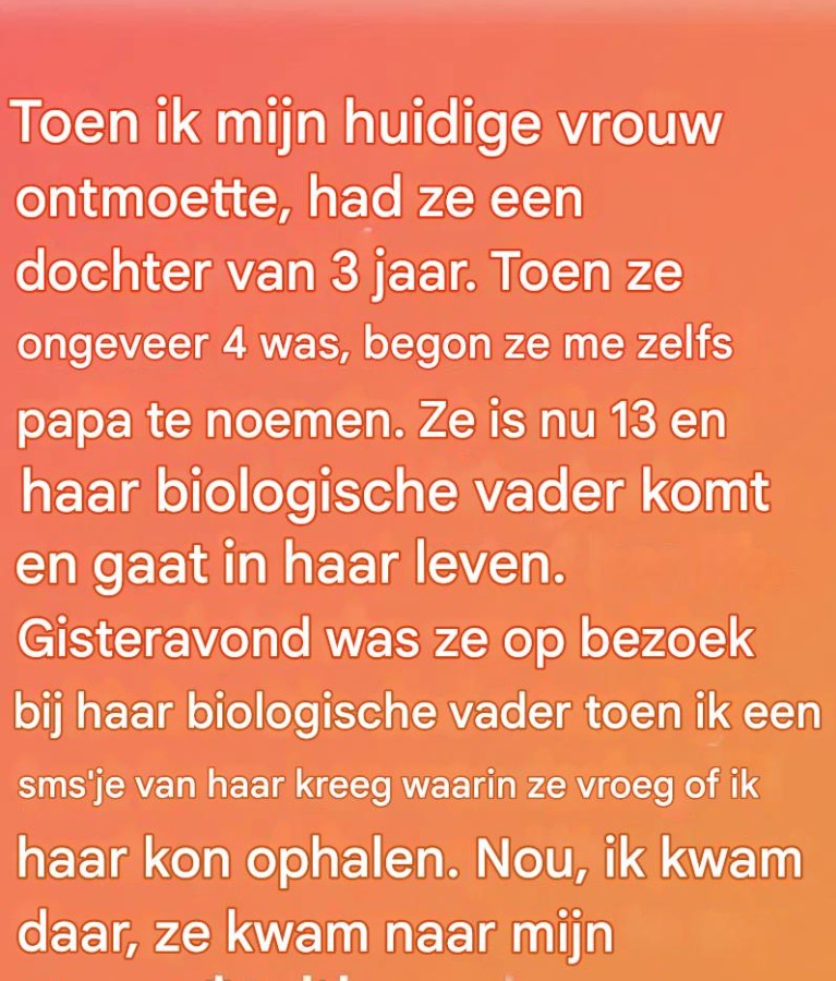 Toen ik mijn huidige vrouw leerde kennen, had ze al een dochter van 3 jaar, en tegen de tijd dat ze vier werd, begon ze me ‘papa’ te noemen. Nu is ze 13 en haar biologische vader is onregelmatig aanwezig in haar leven. Gisteravond, toen ze hem bezocht, stuurde ze me een stil berichtje met … Lire plus
