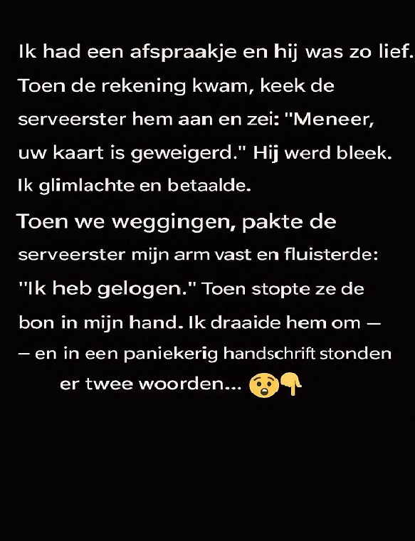 Terwijl ik op een afspraakje was, kwam de rekening en de serveerster zei zachtjes: « Meneer, uw kaart is geweigerd. » Het gezicht van mijn date werd bleek van schaamte en ik voelde de ongemakkelijkheid tussen ons als een dikke mist neerdalen. We zeiden allebei niet veel terwijl we onze spullen pakten om te vertrekken. Het was … Lire plus