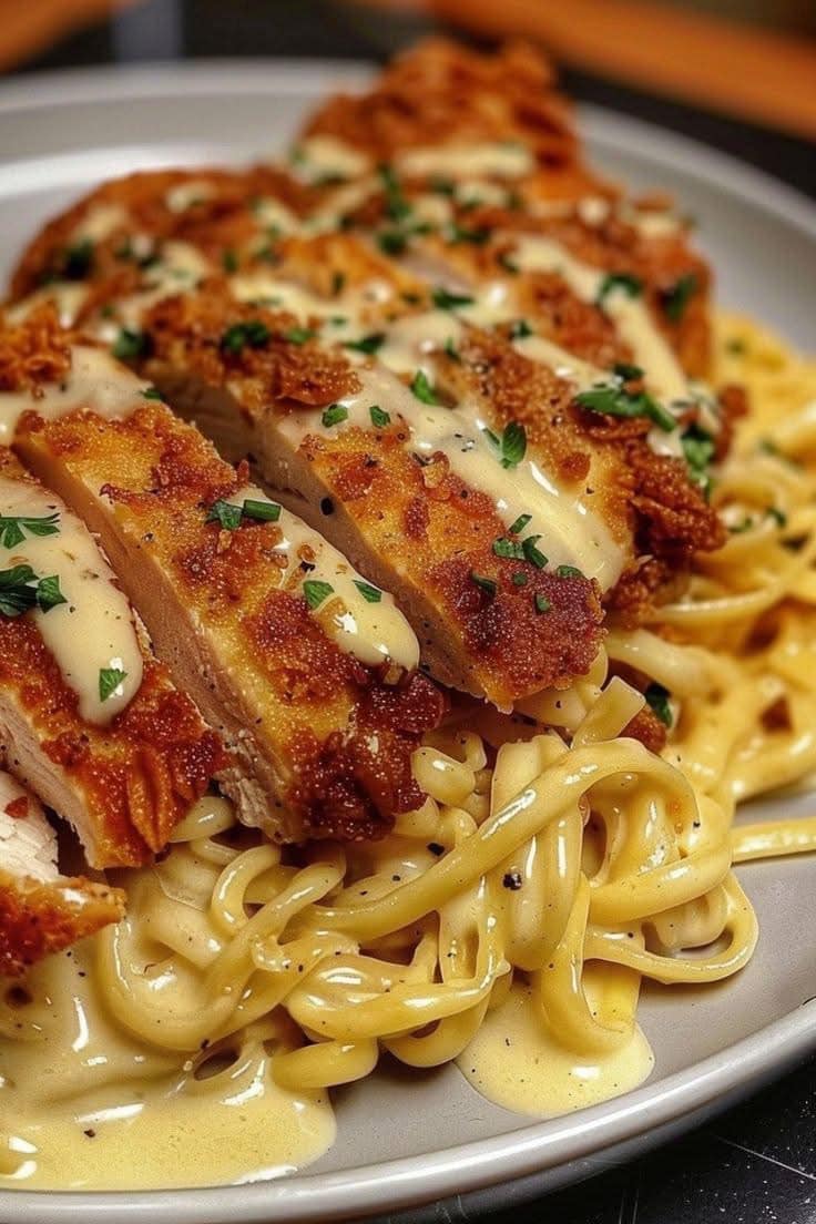 Dit recept combineert krokante, gepaneerde kip met een romige en smaakvolle pastasaus voor een heerlijke en bevredigende maaltijd.