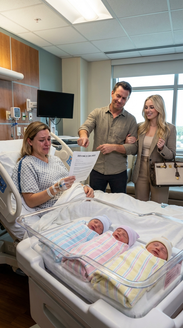 De dag dat ik beviel van onze drieling, twee jongens en een fragiel meisje, voelde alsof ik de finishlijn overschreed, terwijl ik tegelijkertijd in een eindeloze, angstaanjagende leegte stortte. Mijn lichaam was opgezwollen, zat onder de hechtingen, trilde van uitputting en mijn geest worstelde om het onophoudelijke ritme van de machines in de neonatale intensive care-afdeling bij te houden. Ik stond daar in een ziekenhuisjurk, nauwelijks in staat om rechtop te blijven staan, starend door dik glas naar drie onvoorstelbaar kleine levens, verbonden met draden, monitoren en knipperende lampjes die elke ademhaling dicteerden.