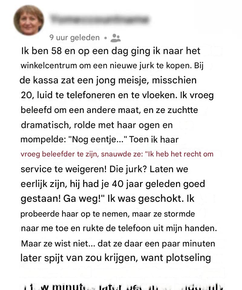 Toen ik vroeg of de jurk in mijn maat was, rolde ze met haar ogen, beëindigde het gesprek en mompelde: « Nog eentje. »