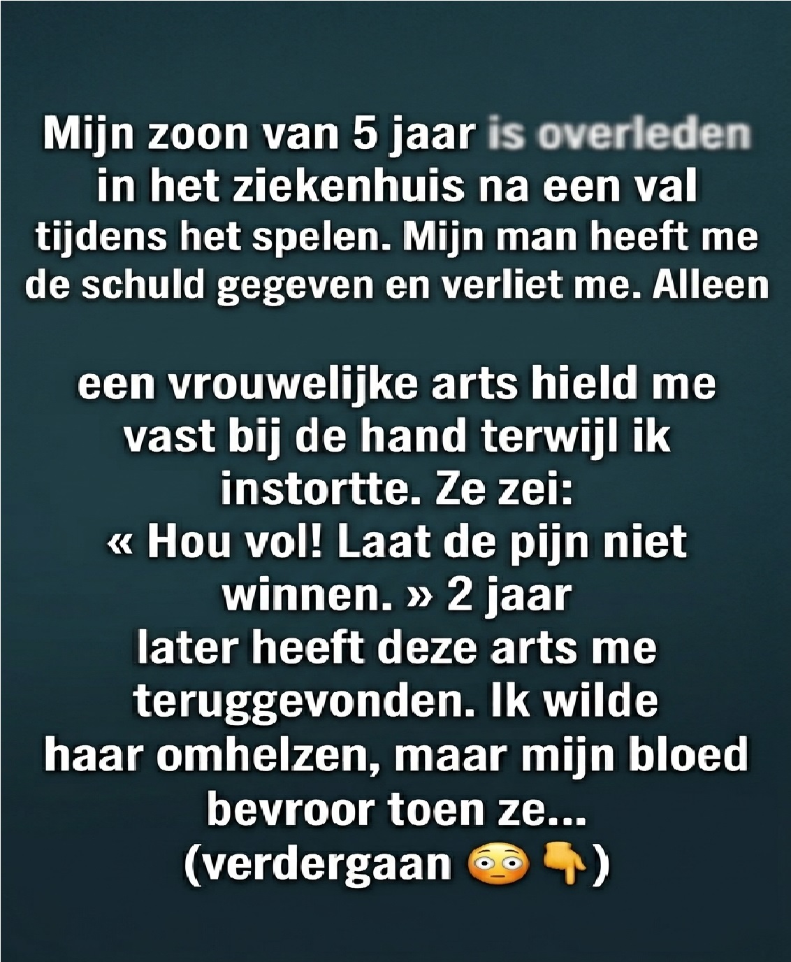 Soms verandert mijn leven in een fractie van een seconde. Een moment van vreugde, een uitbarsting van lachen… en dan slaat alles om. Hoe kan ik verder als alles lijkt in te storten? Achter deze universele vraag schuilt een diep menselijk verhaal, vol pijn, maar ook met een onverwacht lichtpuntje dat opduikt waar ik het het minst verwacht.