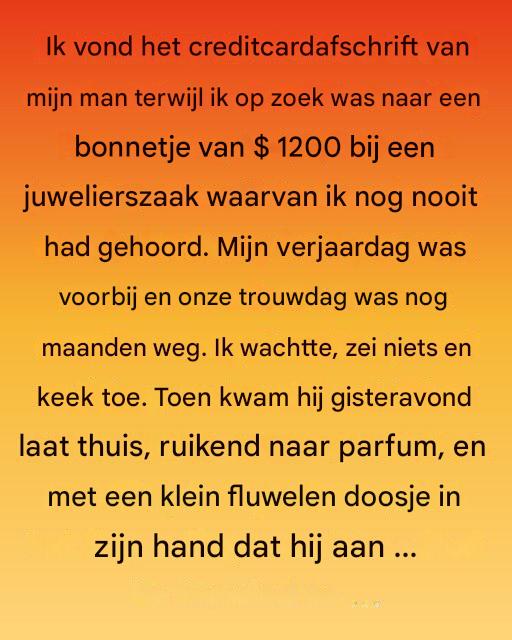 Soms verandert het leven niet met een storm of een schreeuw, maar met iets kleins en stils – een ontvangstbewijs, een geur, een blik die blijft hangen. Voor mij begon het met een creditcardafschrift dat ik niet mocht zien.