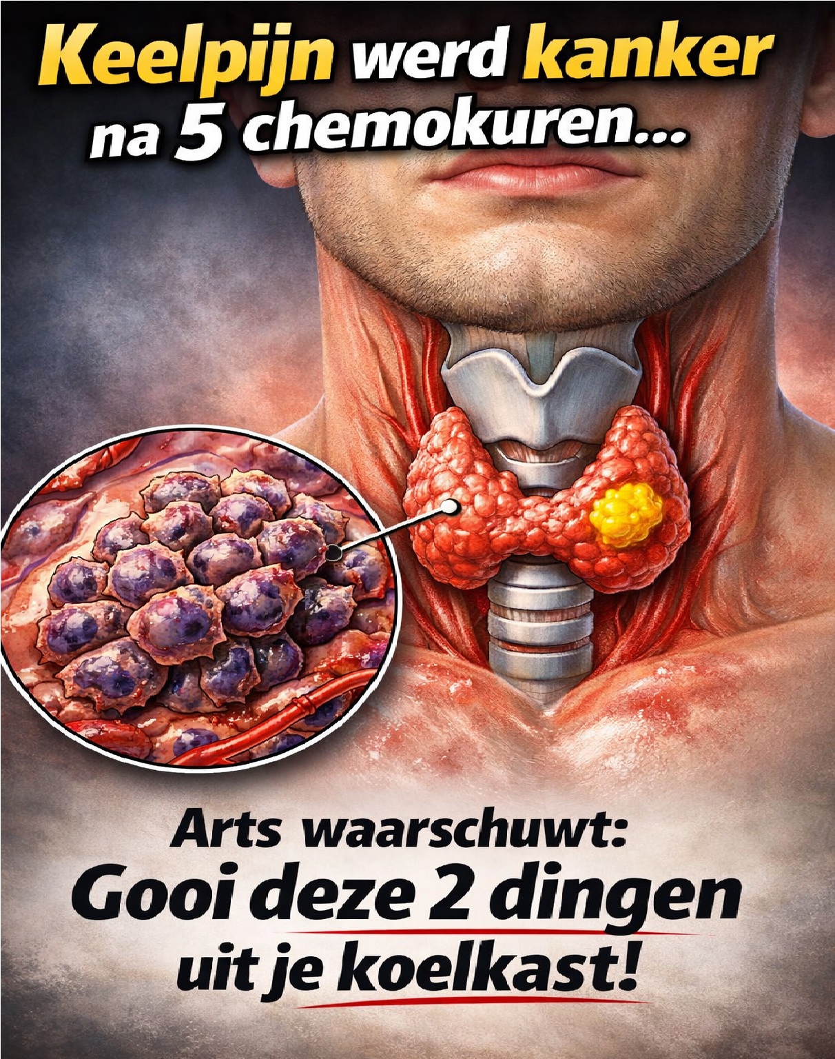 Toen de 35-jarige Minh, een ogenschijnlijk gezonde kantoormedewerker, voor het eerst last kreeg van aanhoudende keelpijn, dacht hij dat het gewoon een verkoudheid was of het gevolg van lange werkdagen en stress. Hij behandelde het met zuigtabletten en huismiddeltjes, in de verwachting dat het binnen een paar dagen over zou gaan. Maar weken gingen voorbij en de pijn verbeterde niet – integendeel, het werd erger. Toen hij uiteindelijk naar een specialist ging, was de diagnose schokkend: keelkanker in stadium 2. Na vijf intensieve chemotherapiesessies gaf zijn arts niet alleen advies over herstel, maar ook een onverwachte waarschuwing. « Als u uzelf en uw gezin wilt beschermen, gooi dan deze twee dingen onmiddellijk uit uw koelkast », zei de arts.
