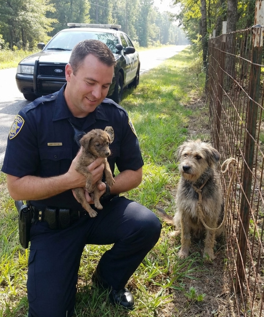 Sommige ogen smeken om eten. Andere om genegenheid. De blik van deze puppy vroeg om iets heel anders. Hij vroeg om urgentie. Hij vroeg om tijd. Hij vroeg me te volgen. En toen deed hij iets wat ik nog steeds niet kan verklaren: hij ging pal voor de politieauto staan, waardoor ik moest remmen. Midden op de rijbaan. Zijn moed ontnam me de adem.
