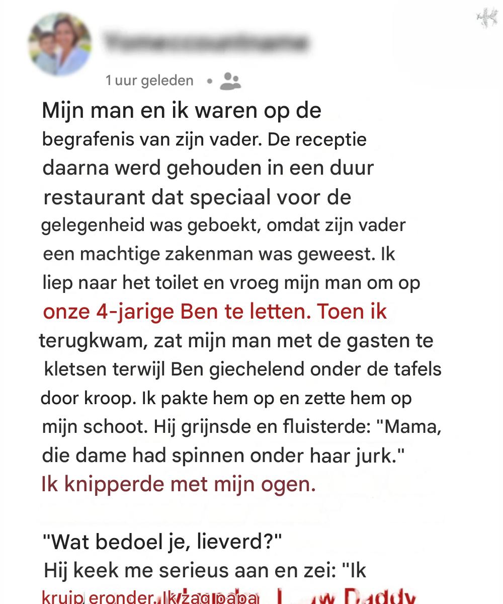 Toen ik hem vond, vertelde hij me zachtjes dat hij zijn vader het been van een andere vrouw had zien aanraken – een vrouw die ik altijd had vertrouwd.