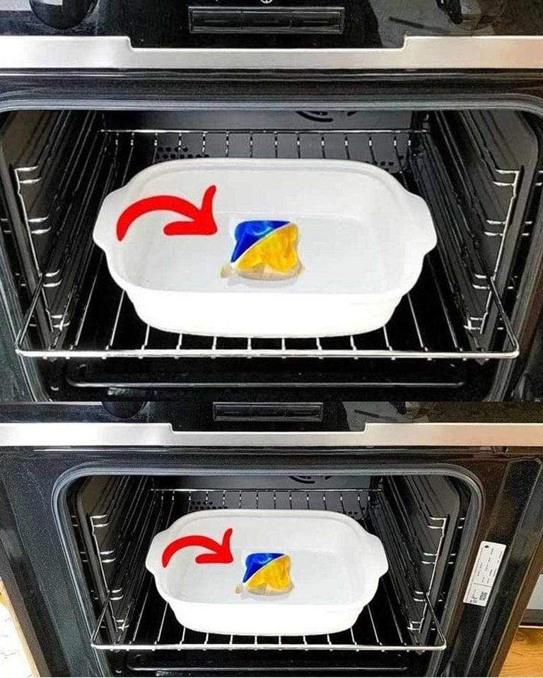 Vaatwastabletten zijn ontworpen om met hoge temperatuur vuil om te gaan. Het is dus geen wonder dat het werkt voor het reinigen van de oven!