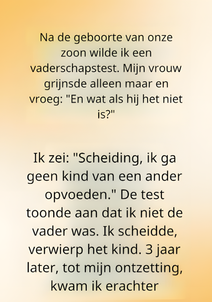 De uitslag van de test liet vijf dagen op zich wachten. Vijf dagen lang leefden we als vreemden in ons kleine huis, terwijl Emma mechanisch voor onze zoon zorgde en elk echt gesprek met mij vermeed. Ik hield mezelf voor dat haar afstandelijkheid een bewijs van schuld was, dat ze zich voorbereidde op een mogelijke ontmaskering, dat ik er goed aan had gedaan om de test te eisen.