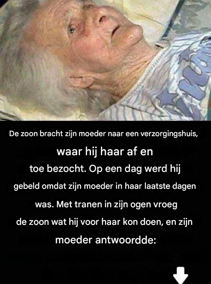 Ze waarschuwde me streng om voorzichtig te zijn met wat ik achterliet en zei dat ze daarom het verpleeghuis wilde moderniseren, omdat ze bang was dat mijn kinderen me daar ooit zouden achterlaten en ik hetzelfde zou meemaken als zij. Haar laatste woorden waren: « Wat je geeft, krijg je. »