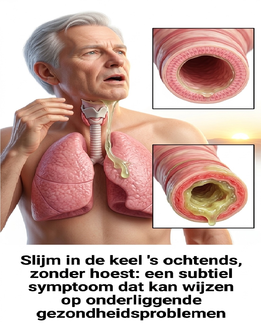 Elke ochtend wakker worden met een aanhoudend gevoel van slijm in de keel – zelfs zonder te hoesten – kan ongemakkelijk en verwarrend zijn. Veel mensen beschouwen het als een onschuldig ongemak en schrijven het toe aan droge lucht of een slechte nachtrust. Wanneer dit symptoom echter vaak voorkomt of aanhoudt, kan het een stille manier zijn waarop het lichaam een onderliggende gezondheidsprobleem signaleert dat aandacht verdient.