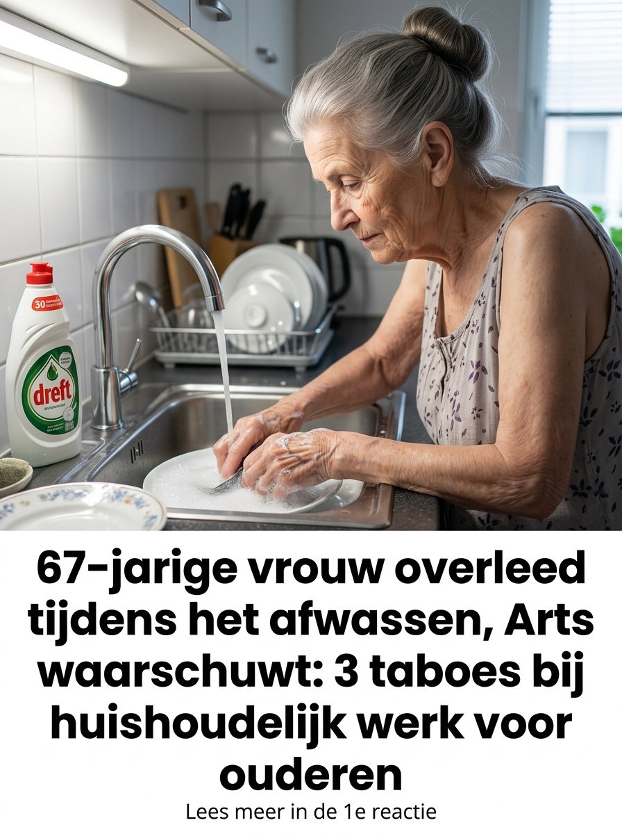 Een 67-jarige vrouw overleed tijdens het afwassen; een arts waarschuwt voor 3 taboes die gelden wanneer ouderen huishoudelijk werk doen.