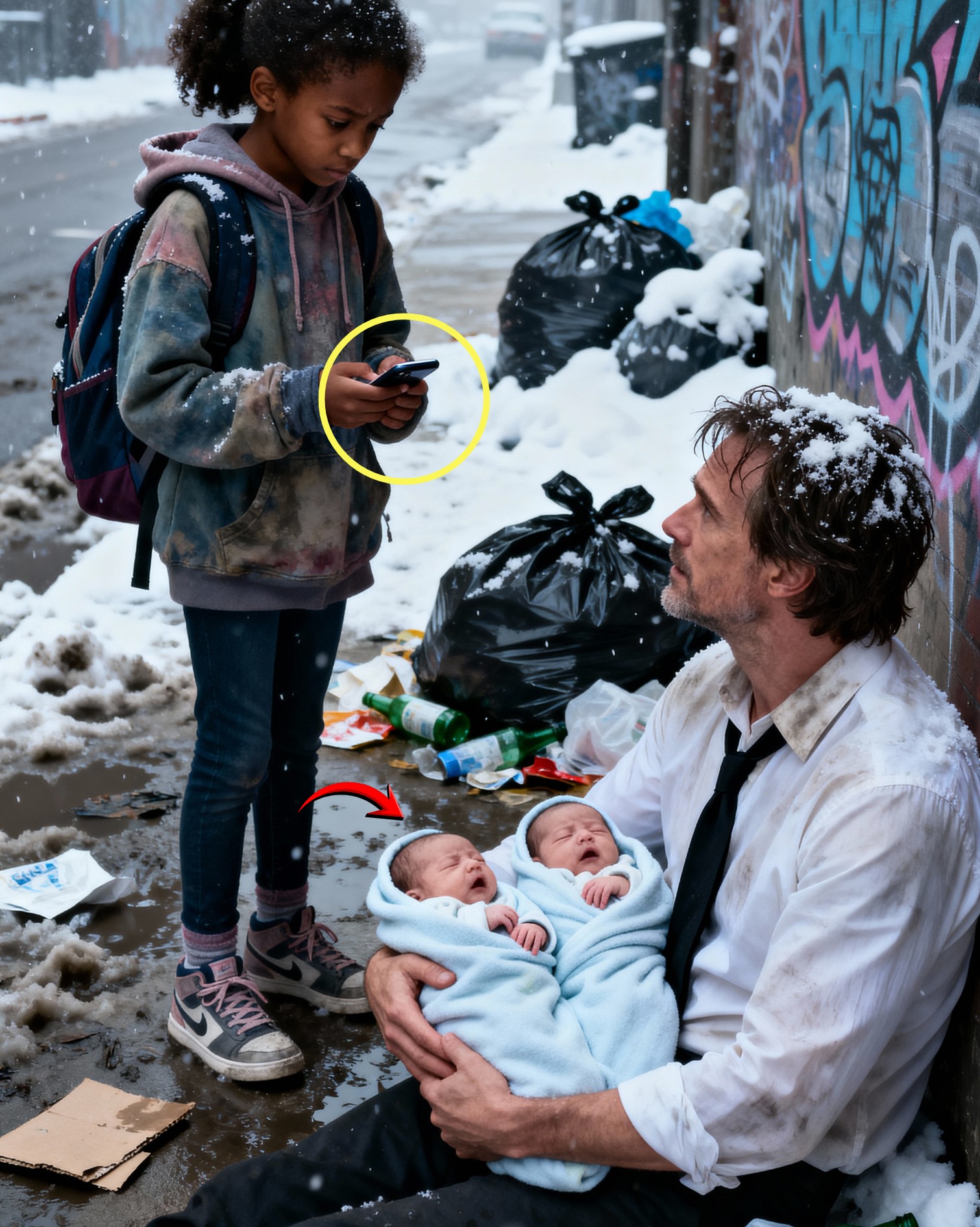Op een ijskoude novemberavond in 2025 beukte de regen met bakken uit de hemel in de verlaten pakhuizenwijk, alsof de hele stad weggevaagd wilde worden. De elfjarige Harper Miller sjokte de lange weg naar huis, met haar capuchon op en haar sneakers doorweekt tot de gaten in de zolen. Ze nam altijd deze route – geen SUV’s van haar ouders, geen klasgenoten die deden alsof ze niet staarden naar het meisje dat nooit werd opgehaald.
