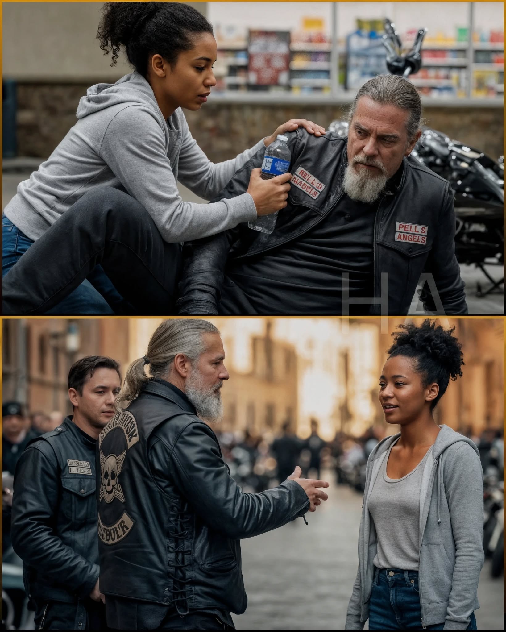 « Onthoud die naam, Cole, » fluisterde hij tegen een andere motorrijder die net was aangekomen. « Zeg ze… dat zij me heeft gered. »