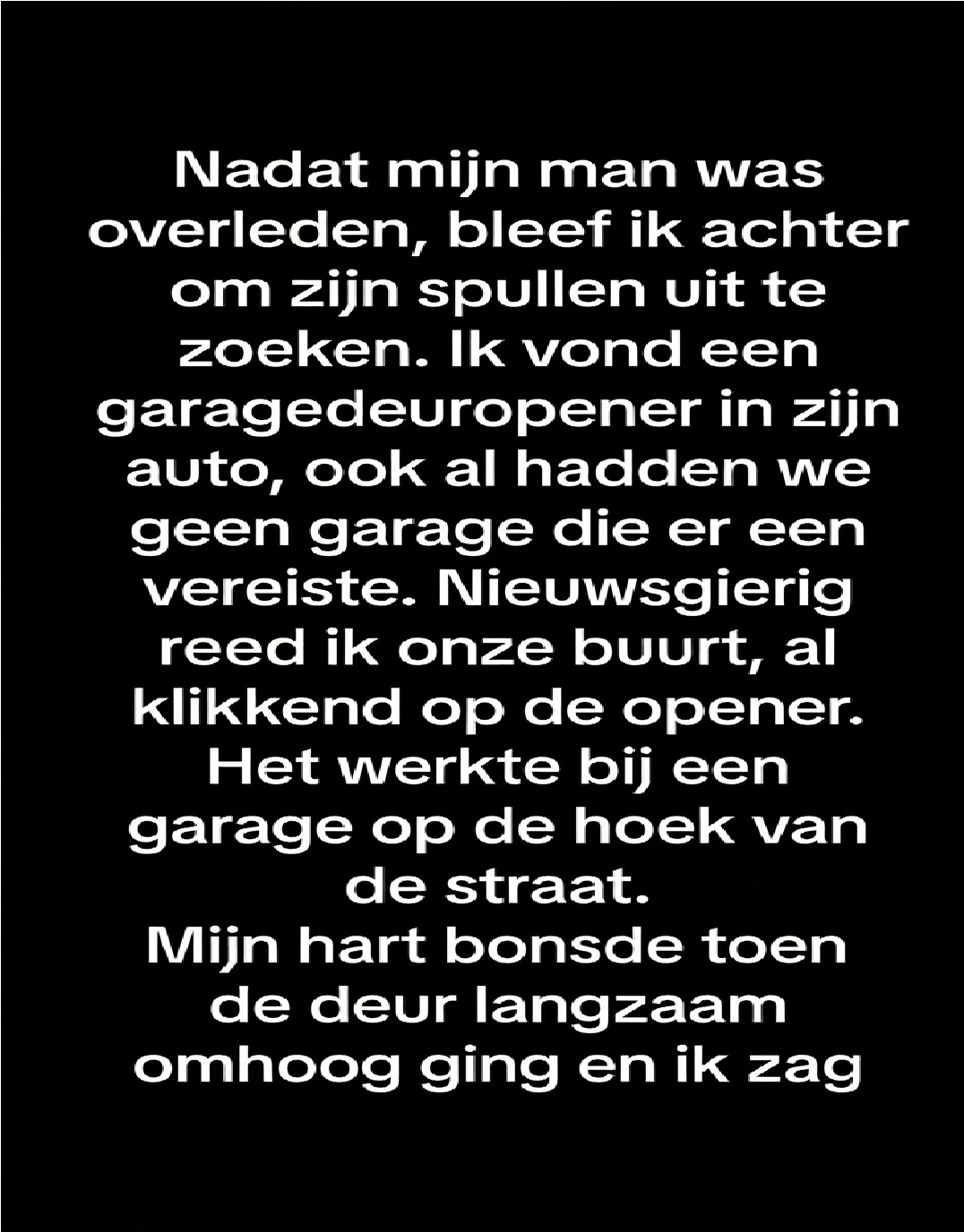 Het was vreemd, want we hadden geen garage, dus van wie zou deze garagedeuropener kunnen zijn?
