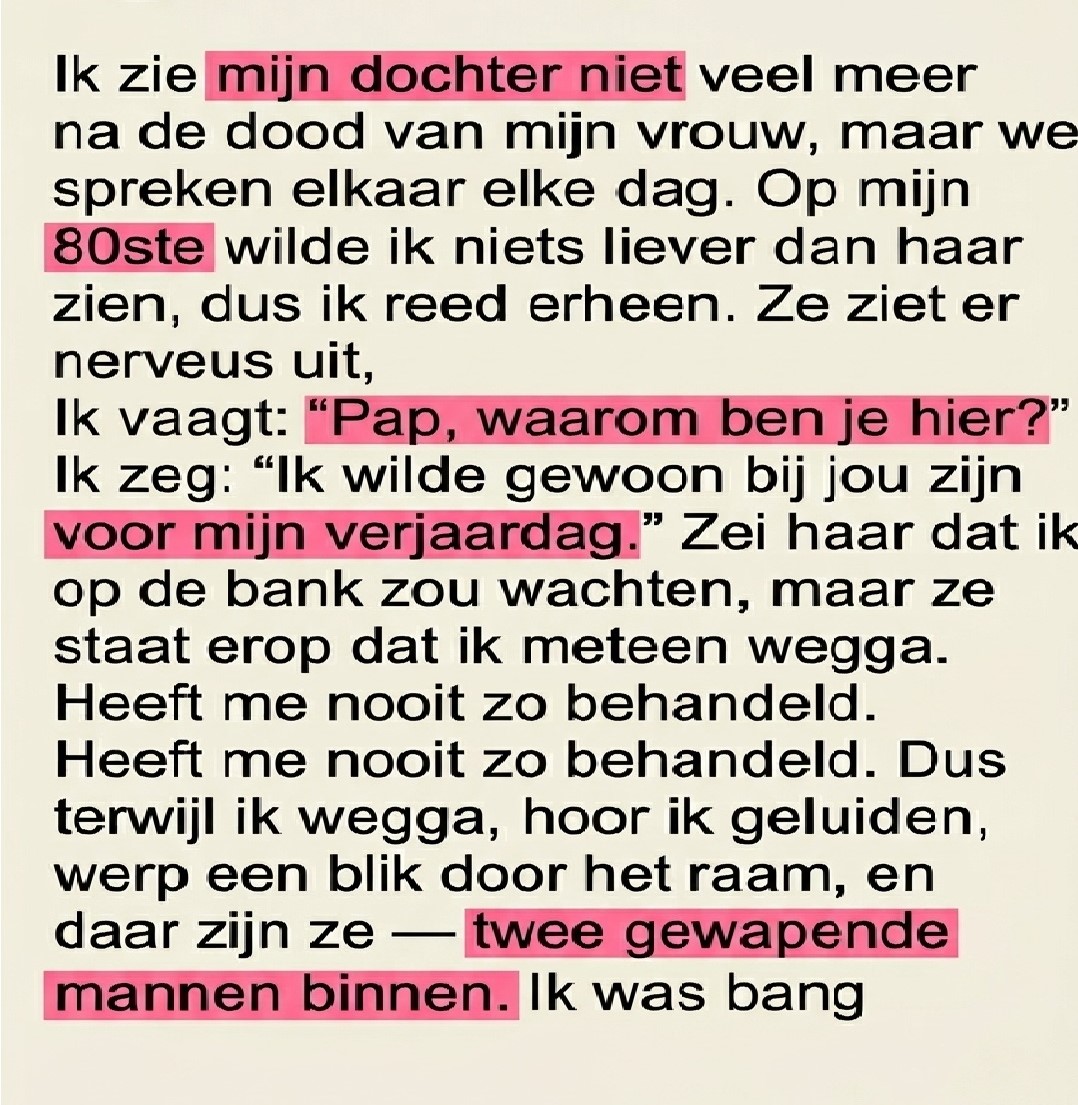 Toen de deur openging, zag hij zijn dochter staan. Maar in plaats van vreugde, zag hij iets anders in haar ogen.