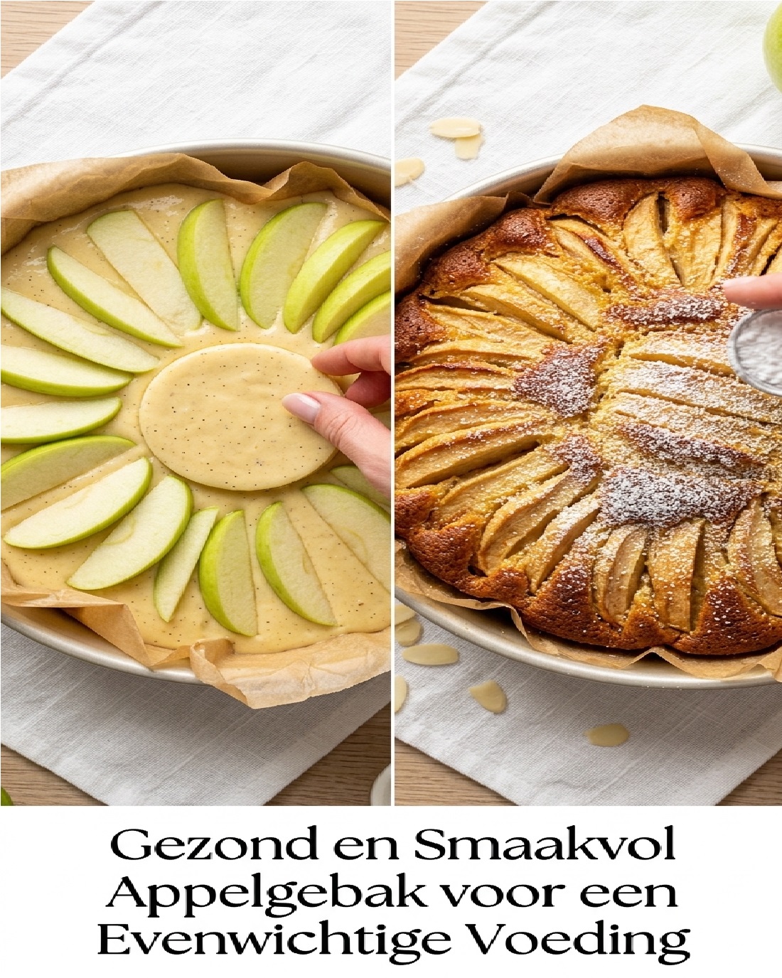 Gezonde, eenvoudige en budgetvriendelijke recepten zijn tegenwoordig onmisbaar voor iedereen die wil genieten van de zoetheid van gebak zonder in te boeten op een evenwichtige voeding. Dit smeuïge appelgebak is daar een perfect voorbeeld van: een heerlijk dessert dat laag is in vet, rijk aan natuurlijke vezels en geschikt voor een afslankdieet. Ontdek hoe je dit smakelijke en gezonde gebak kunt maken, ideaal voor elk moment van de dag. De Voordelen van een Gezond Appelgebak Voordat we in de bereidingswijze duiken, is het interessant om te benadrukken waarom dit soort gezonde desserts perfect is voor iedereen die voeding, welzijn en genot wil combineren. Rijke Vezels en Antioxidanten in Appels Appels zijn een uitstekende bron van oplosbare vezels, die de spijsvertering bevorderen en een verzadigd gevoel geven. Ze helpen ook de bloedsuikerspiegel te stabiliseren, waardoor ze een geliefd fruit zijn in gezonde voedingsprogramma’s en duurzame afslankmethoden. Een Vetarm Dessert Met magere melk en een beperkte hoeveelheid suiker is dit gebak een uitstekende keuze voor iedereen die een caloriearm dieet volgt of zich richt op een gezonde hartgezondheid. Een Eenvoudig en Budgetvriendelijk Recept Met slechts enkele alledaagse ingrediënten is dit gezonde dessert toegankelijk voor iedereen, zelfs voor mensen met een beperkt budget. Je hebt geen keukenmachine nodig, alleen een kom, een garde en een oven. Ingrediënten voor een Gezond en Smeuïg Gebak (3SP) Hier is de complete lijst van ingrediënten om dit lichte en smakelijke gebak te maken: