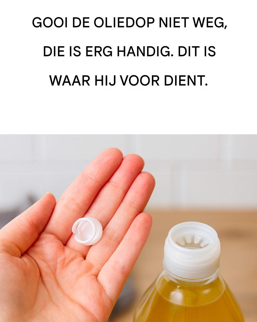 Wanneer je een nieuwe fles olie opent, zie je een plastic afdichtingsring onder de dop. De meeste mensen gooien die zonder erbij na te denken weg, maar doe dat niet!