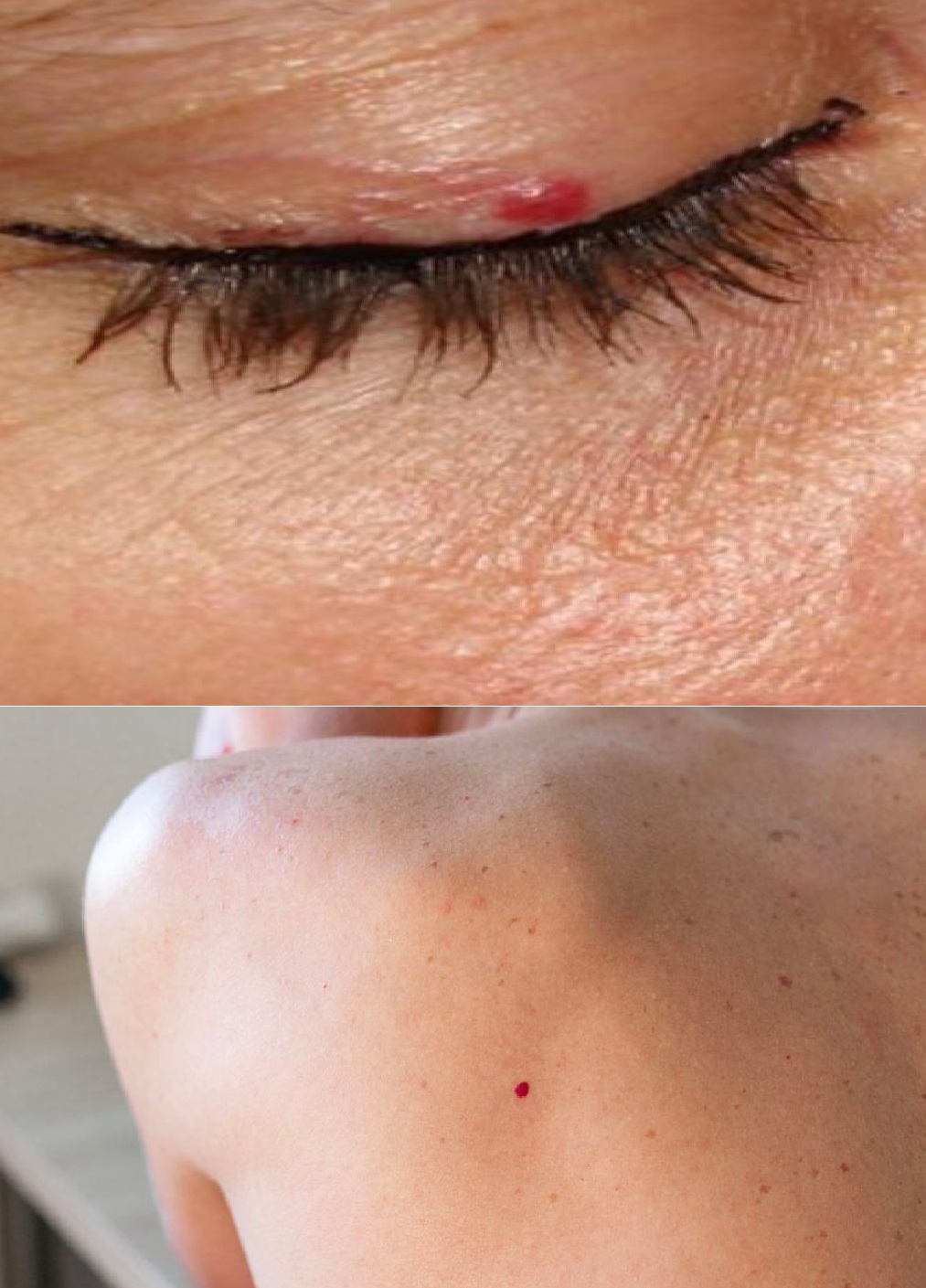 Rode stippen zijn vasculaire aneurysma’s. Ze ontstaan door een verminderde werking van de alvleesklier, die enzymen en hormonen produceert die de gezondheid van de huid beïnvloeden.