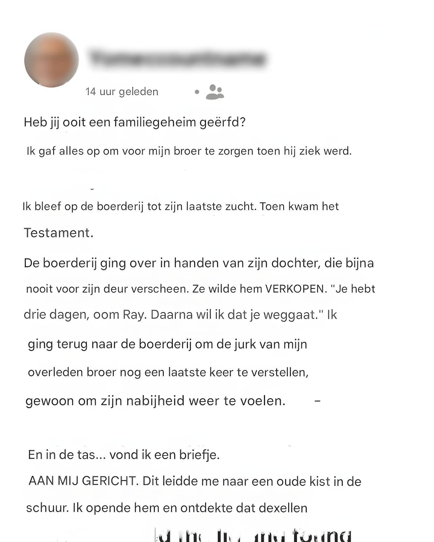 Maar ik had het mis. De echte klap kwam later, toen ik een korte ontdekking deed die verborgen lag in zijn oude schuur, met daarin een waarheid die neemand ooit had durven investeren.