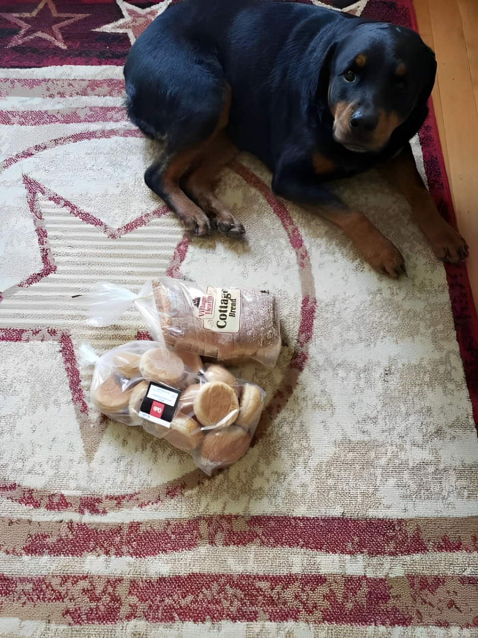 De hond, hoewel al op leeftijd, beweegt zich met zelfvertrouwen en gratie. Ondanks zijn jaren heeft hij zijn dagelijkse missie niet vergeten. Wanneer hij de winkel binnenkomt, glimlacht de eigenaar, want hij kent de hond als familie. De hond loopt rustig naar de balie en kijkt de verkoper aan met zijn rustige ogen, alsof hij zegt: “Ik ben hier voor het brood.” Zonder een woord te zeggen, geeft de verkoper het brood, dat de hond in zijn bek neemt en richting de deur loopt.