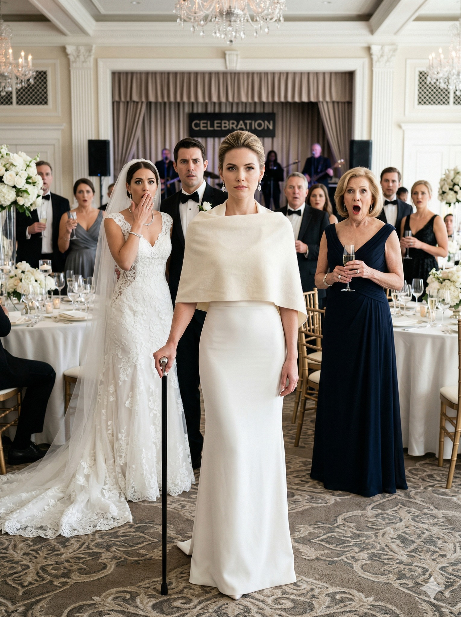 Evelyn Cole liep over de marmeren vloer met twee champagneglazen in haar handen. Haar armbanden weerkaatsten in het warme licht en haar hakken galmden zachtjes terwijl ze zich voortbewoog met de verfijnde gratie van iemand die decennialang had gewerkt aan het creëren van een leven dat er van buitenaf moeiteloos uitzag. Even leek ze in die elegantie bijna fragiel, alsof alles wat ze had opgebouwd afhing van een zorgvuldig evenwicht.