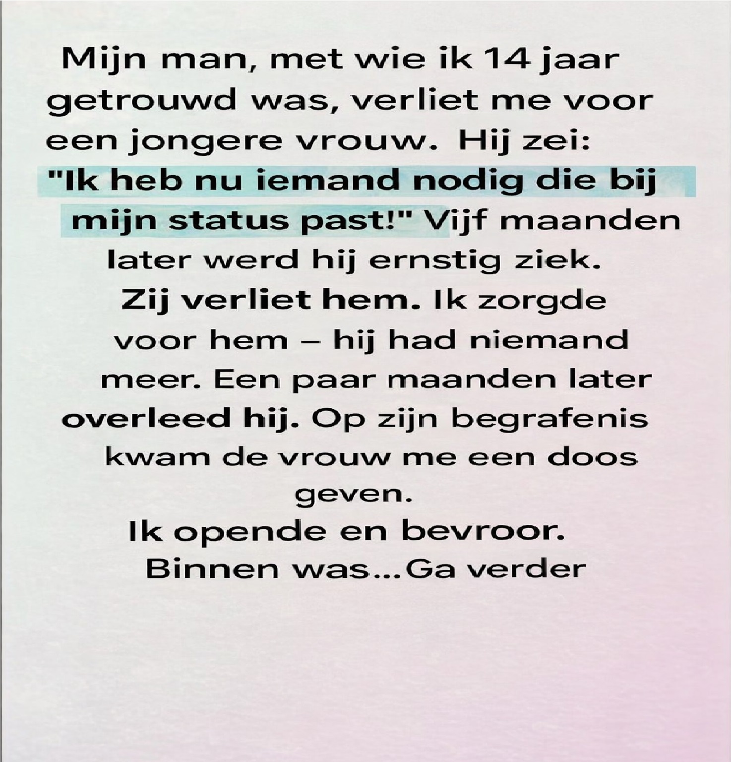 ‘Ik ben hier te groot voor geworden,’ zei hij, terwijl hij om zich heen keek naar het leven dat we samen hadden opgebouwd. ‘Ik heb iemand nodig die past bij de richting die ik op wil.’