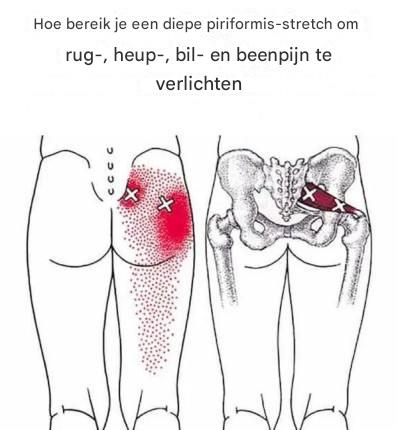 Deze kleine, dunne spier bevindt zich achter de grote bilspier (gluteus maximus) en verbindt de wervelkolom met het bovenste deel van het dijbeen. Als de piriformisspier gespannen, verrekt, ontstoken of verkrampt is, kan effectieve piriformis-stretching de spierfunctie herstellen en de pijn verlichten.