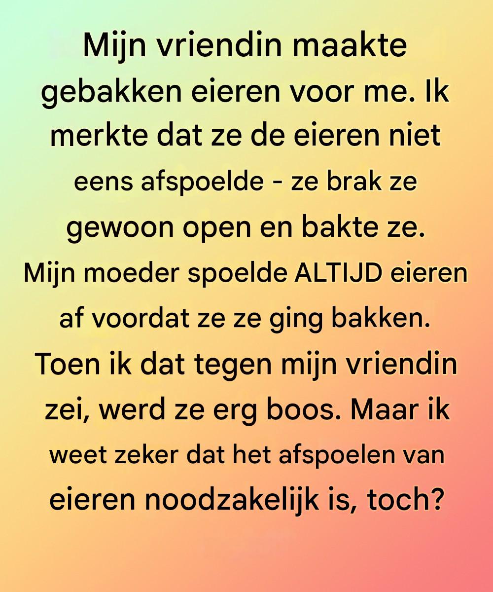 ‘Moet je ze niet eerst afspoelen?’ vroeg hij nonchalant. ‘Mijn moeder deed dat altijd.’