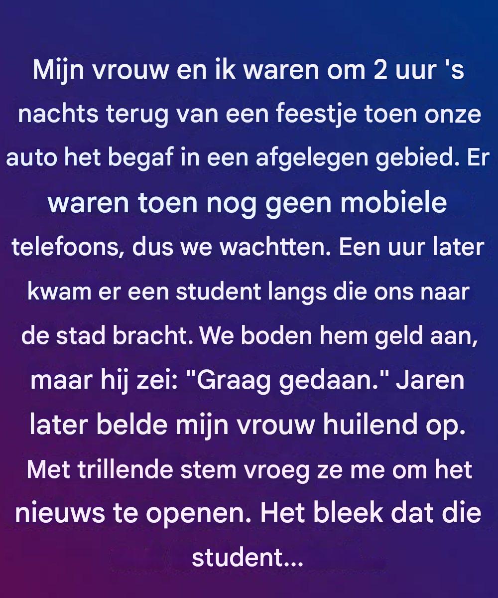 Mijn vrouw, Amrita, en ik zaten daar in stilte, de motor was uitgevallen en de weg was volledig verlaten. Er was geen telefoonbereik, geen teken van hulp, alleen de zwakke sterren boven ons. De minuten leken langer en zwaarder te duren terwijl we wachtten, onzeker of er iemand voorbij zou komen. Toen, na wat een eeuwigheid leek, verschenen koplampen in de verte. Een afgetrapte Toyota Corolla stopte en een jonge man stapte uit. Zonder aarzeling bood hij zijn hulp aan. Hij weigerde elke betaling en zei alleen dat hij graag van dienst was.