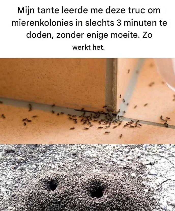 Ik was er helemaal niet bij! Na talloze sprays en vallen te hebben geprobeerd zonder blijvend resultaat, deelde mijn tante een simpele methode die wél werkte: een oplossing van borax en suiker. Het pakt de hele mierenkolonie aan, niet alleen de mieren die je ziet.