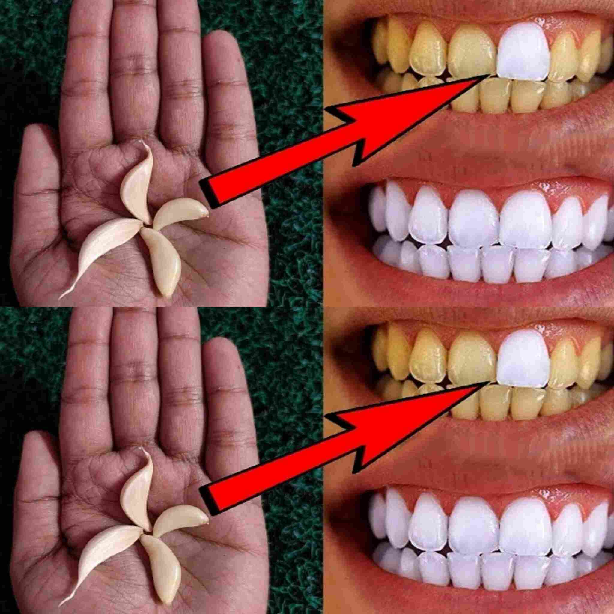 Knoflook bevat een krachtige werkzame stof:  allicine . Dit natuurlijke bestanddeel heeft antibacteriële eigenschappen die bacteriën bestrijden die tandplak en vergeling van tanden veroorzaken. Met andere woorden: het helpt uw ​​tanden schoon te houden en  de zichtbaarheid van oppervlaktevlekken te verminderen .