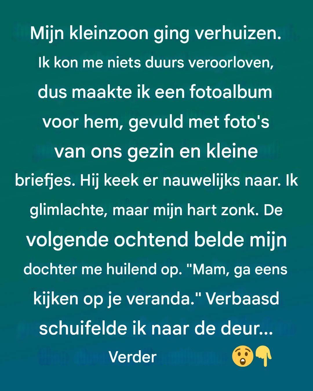 Toen ik het hem op de verhuisdag gaf, opende hij het nauwelijks. Hij wierp een blik op de kaft, bedankte me zachtjes met een « Dankjewel, oma, » en ging meteen weer verder met het inpakken van dozen.