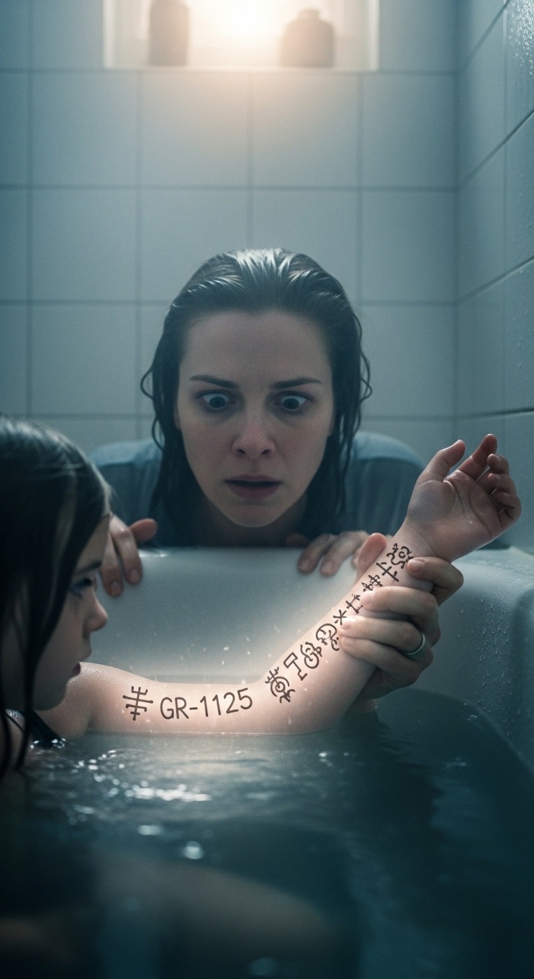 Op een avond, toen Olivia Emily hielp met haar bad, terwijl het warme water over haar armpjes stroomde, merkte ze iets op waardoor haar bloed koud werd. De vage markeringen op Emily’s arm waren veranderd. Ze waren donkerder geworden, scherper en meer gedefinieerd tegen haar huid. Onder de hitte van het water leken de vreemde symbolen te verschuiven en opnieuw uit te lijnen, de vormen herschikten zich in een nieuw, angstaanjagend duidelijk patroon – een reeks letters en cijfers: GR-1125.