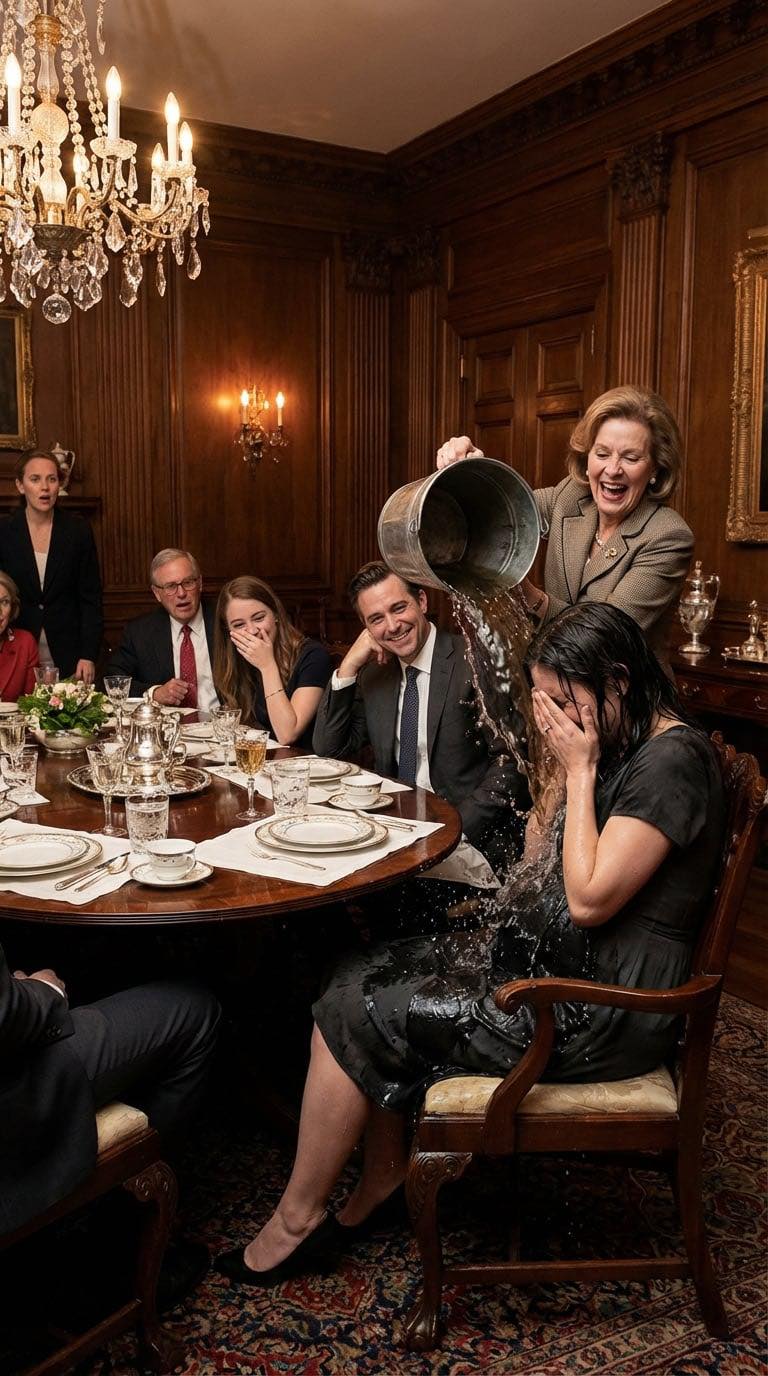 Ik heb mijn ex-man en zijn rijke familie nooit verteld dat ik de geheime eigenaar was van het miljardenbedrijf van hun werkgever. Ze dachten dat ik een ‘blut, zwangere liefdadigheidsgeval’ was. Tijdens een familiediner gooide mijn ex-schoonmoeder per ongeluk een emmer ijswater over mijn hoofd om me te vernederen, lachend: ‘Je hebt in ieder geval eindelijk een bad gehad.’ Ik zat daar druipnat. Toen pakte ik mijn telefoon en stuurde één sms: ‘Start Protocol 7.’ Tien minuten later zaten ze op hun knieën te smeken.