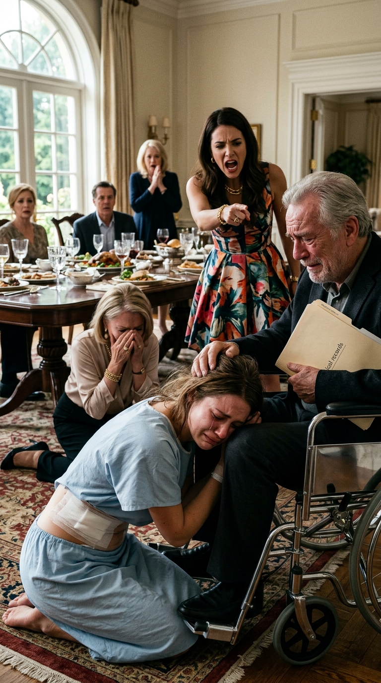 ‘Op Natalie ,’ zei mijn moeder met een stem die trilde van ingestudeerde emotie, terwijl ze haar glas ophief naar mijn oudere zus. ‘Mijn ongelooflijke, onbaatzuchtige dochter. De vrouw wiens onvermoeibare inzamelingsactie eigenhandig het leven van je vader heeft gered.’