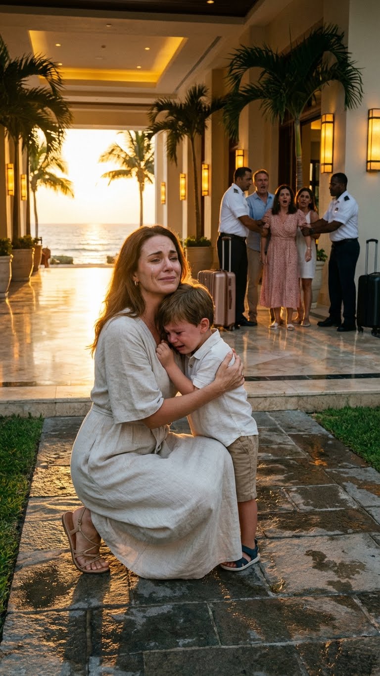 Ik heb mijn man nooit verteld dat ik mijn erfenis van twee miljard dollar had gebruikt om de luxe resortketen te kopen. Ik loog en zei dat ik een prijs had gewonnen voor een week vakantie, in de hoop dat de reis ons huwelijk zou redden. In plaats daarvan nam hij zijn hele familie mee. Zijn zus spotte met me en noemde me « te provinciaal », en commandeerde me als een soort personeelslid. Ik slikte elke belediging in – totdat mijn schoonvader mijn vijfjarige zoon « leerde zwemmen », waarbij hij zijn hoofd onder water duwde en schreeuwde: « Nutteloos! Als je niet kunt zwemmen, kom dan niet boven! » Mijn hart brak. Ik belde één keer, mijn stem trillend maar duidelijk: « Kom nu. Het is tijd om het vuilnis buiten te zetten. »