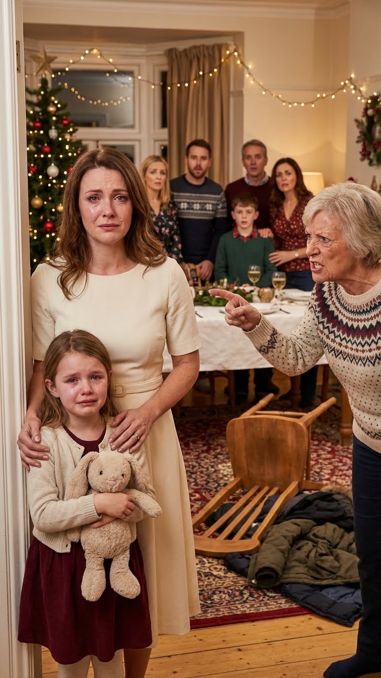 Ik zat aan het uiteinde van de lange mahoniehouten tafel, de plek die gewoonlijk gereserveerd was voor kinderen of ongewenste gasten. Naast me kromp mijn achtjarige dochter, Lily, ineen op haar stoel. Ze droeg een eenvoudig rood fluwelen jurkje dat ik in een warenhuis had gekocht, en ze zag er doodsbang uit. Ze wist, met het instinctieve gevoel van een kind, dat de lucht in deze kamer giftig was.