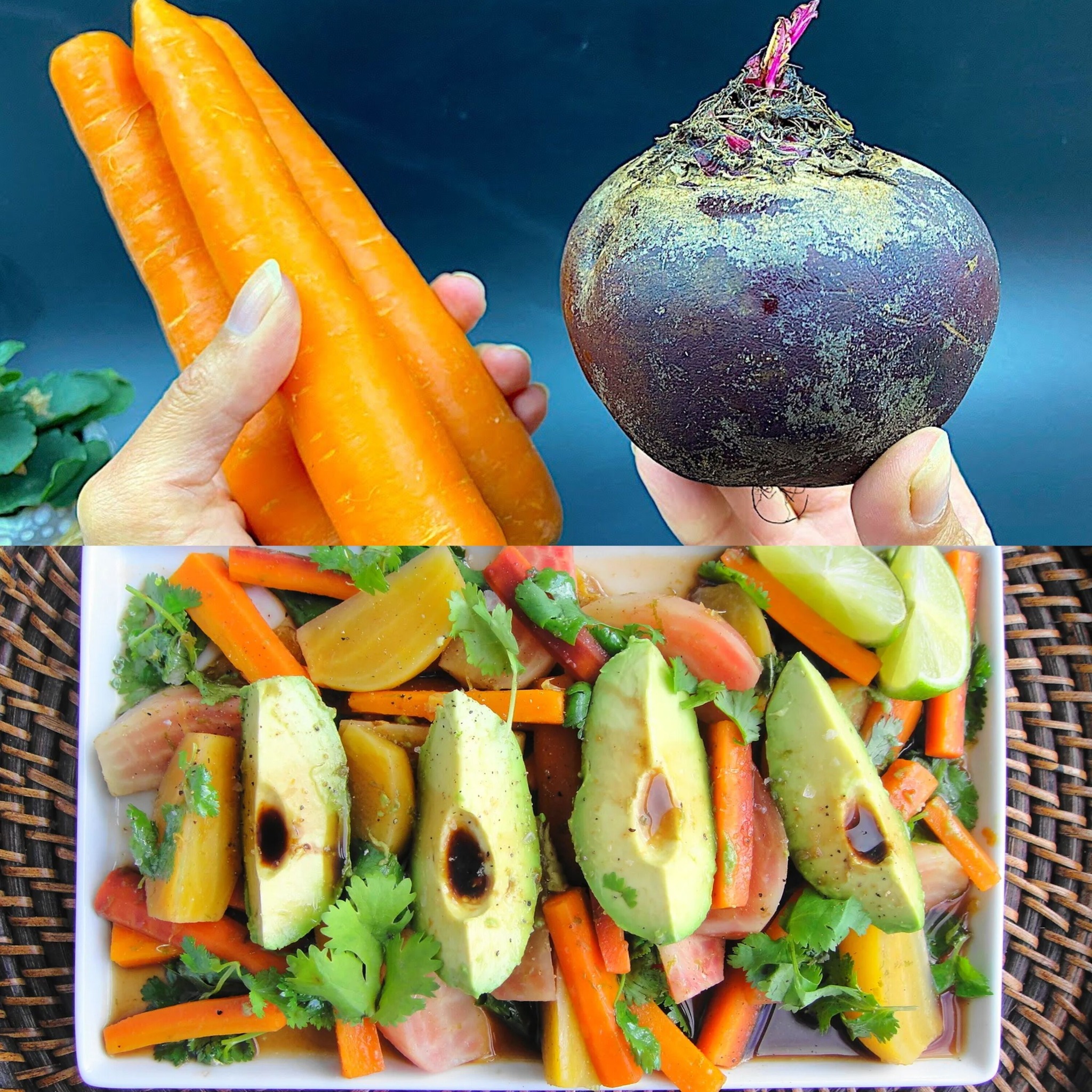 De voordelen van bieten, wortelen en rode biet-avocado’s