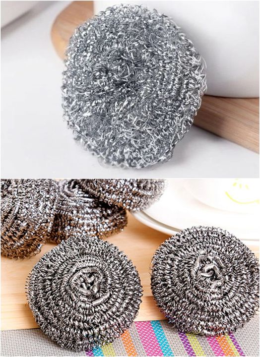 Ik heb metalen sponzen altijd alleen gebruikt om verbrand voedsel uit de vaat te verwijderen, maar aangezien deze methode behoorlijk agressief is, heb ik er in uitzonderlijke gevallen mijn toevlucht tot genomen. Toen ik op internet verschillende andere manieren zag om dergelijke sponzen te gebruiken, begon ik ze vaker te gebruiken.